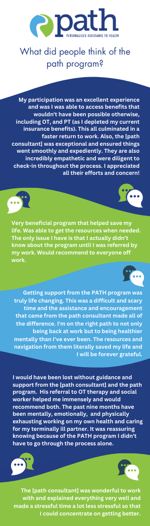 The program is not like any other offered to you. It is not an attendance management, income replacement, or a counselling service like EFAP. path provides personalized assistance–what you need–to help you get well.